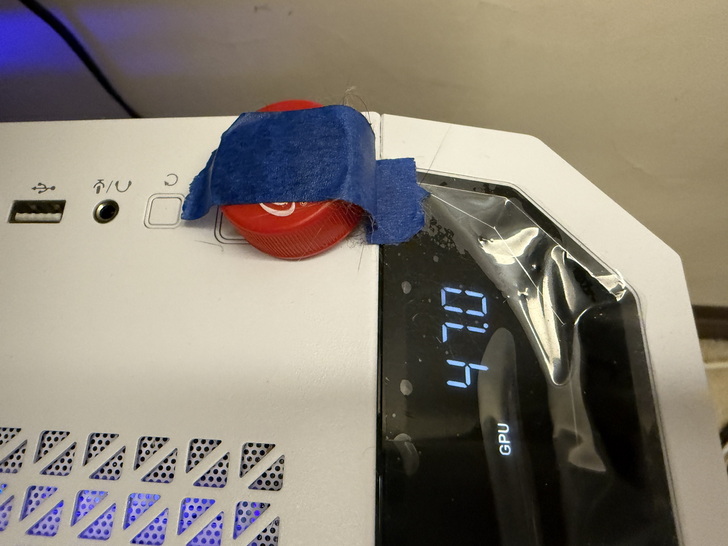 之前的Performance 1 FT因為電源開關在上方,常會被貓皇誤按,所以用瓶蓋加膠帶做了一個保護蓋 XD,等換成C7 ARGB就不用煩惱這方面的問題了!