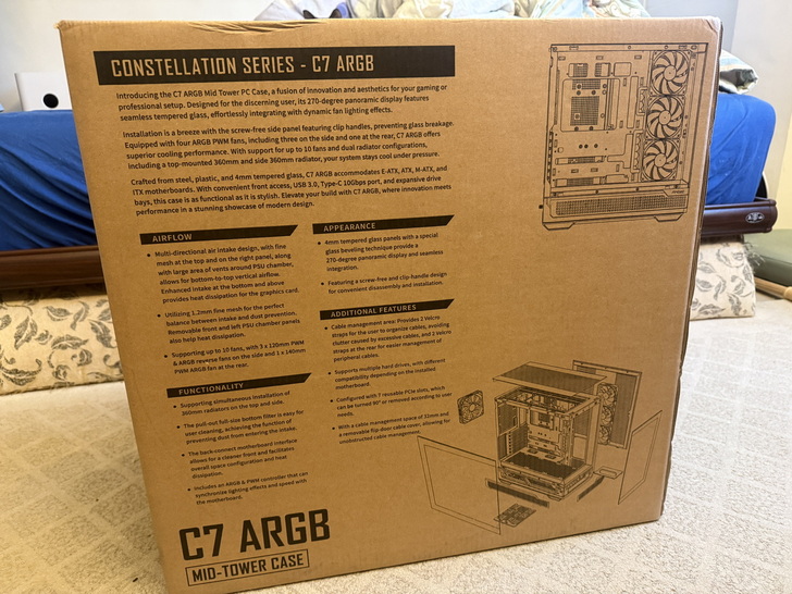好像是一年多前換了Performance 1 FT機殼,但因為電源開關按鈕在上方,雖然有DIY一個瓶蓋在上不,但仍被我家的毛小孩關過幾次電,加上換換病發作,前一陣子又入手了很夯的海景機殼,一樣是Antec 的C7 ARGB,不過白的看膩了,這次選的是黑色,因為工作忙一直沒時間移機,想一想,先拆開拍拍照分享一下,找一天假日再來移機吧,一樣來看圖說故事吧