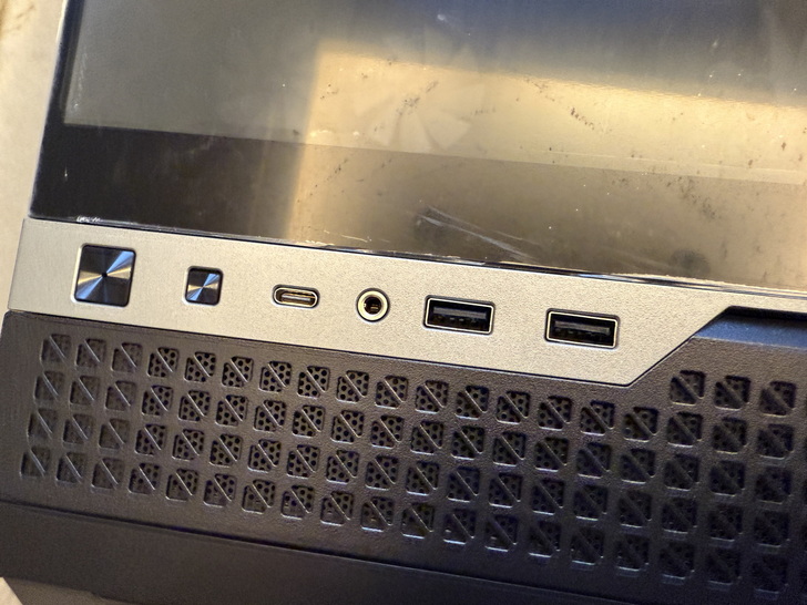 位於前面板下方的IO設計,對於有養貓的人來說,這樣的設計真的讚!不要再讓喵喵誤觸了,IO有電源、RESET、 USB 3.0×2、Type-C、耳麥接孔
