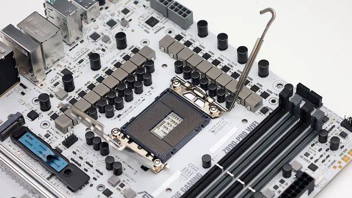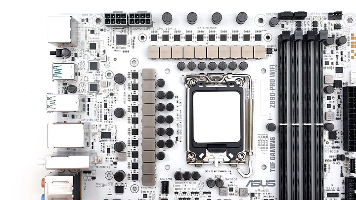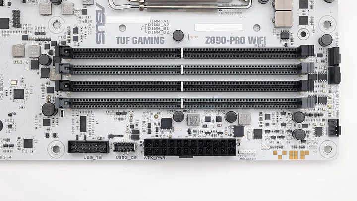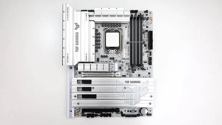 ASUS TUF GAMING Z890-PRO WIFI,是 TUF GAMING 銀白色的主機板,目前價格是 $10,990。與之規格相近的是 TUF GAMING Z890-PLUS WiFi,在細節規格上有差異,顏色則是黑色。這次使用 TUF Z890 PRO 搭配 Intel Core Ultra 9 285K。
