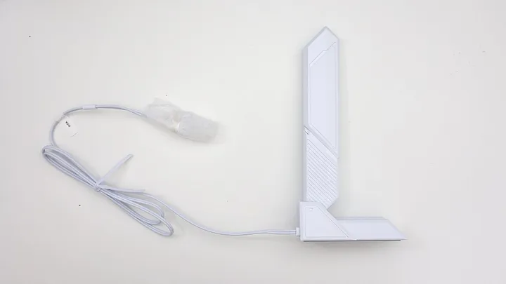 天線部分也是沿用之前 TUF GAMING 系列的造型,天線關節角度也相同,不過與主板相同使用了純白色。