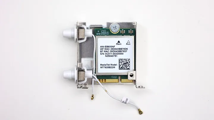 使用的是 MediaTek MT7925B22M。以這張網卡來說算是比較入門款的 WiFi 7,支援 2x2 天線,160MHz 頻寬,4K QAM,最高速度 2.9Gbps。在 MLO 部分支援 2.4GHz + 5GHz、2.4GHz + 6GHz、5GHz + 6GHz。