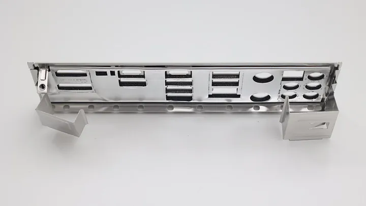 幾個小細節也不錯,這次後 I/O 擋板,其固定方式除了底部的螺絲,還加上了左右固定,最後再加上 VRM 散熱馬甲的固定。
