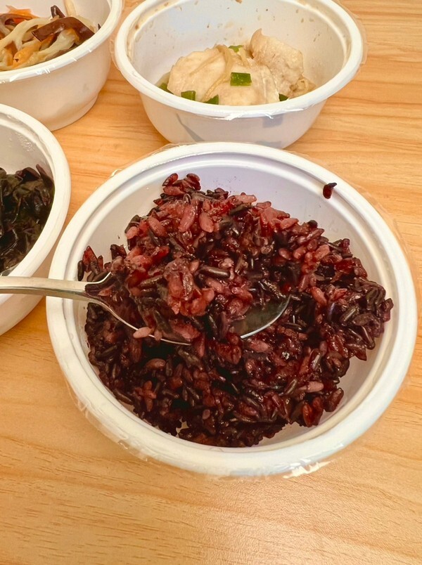 黑米飯的口粒粒分明,吃起來比一般白米更Q彈,卻又不像白米那樣容易鬆散,每一口都能感受到米粒的彈性和層次感,還吃的到黑米本身淡淡的香氣,讓我吃完後覺得很滿足