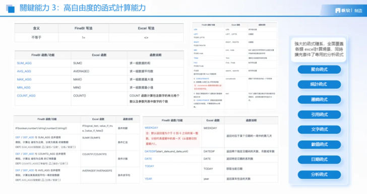 高階函式支援:Def函式體系支援複雜的分析需求,如跨維度與巢狀計算。