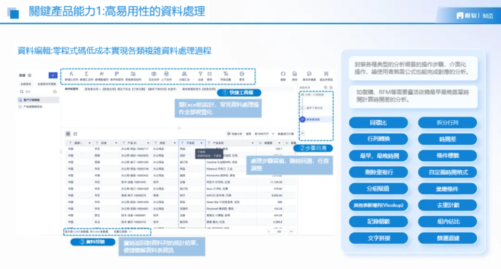 零門檻操作支援:直觀的Excel式介面與拖拽式設計,幫助非技術人員輕鬆上手,降低BI工具的使用門檻。