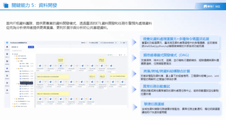 拖拽式資料處理工具:FineDataLink模組提供直觀的視覺化資料處理介面,免編程完成複雜的ETL操作。