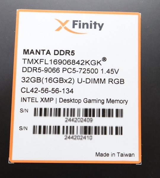 記憶體:v-color Manta XFinity RGB CKD DDR5-9066