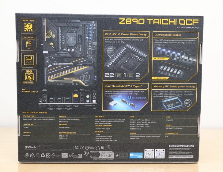 Z890 Taichi OCF 外包裝採用全黑色系跟尺寸也改ATX