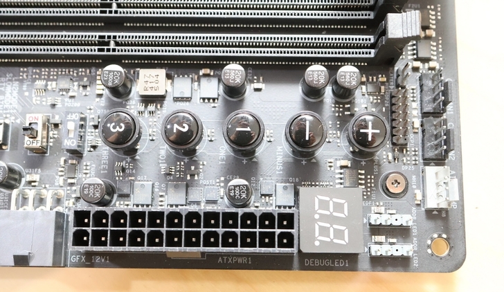 除了Debug燈號以外 OCF 還配置了取多超頻用的實體按鈕,相當豐富可玩性多