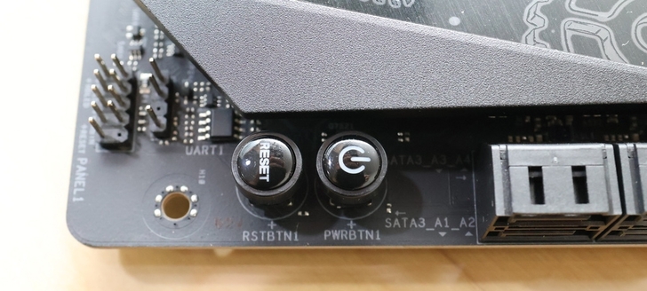慢速模式開關 (SLOWMODE1)、重開機按鍵 (RTY_BTN1)、安全開機按鈕 (BFG_BTN1)