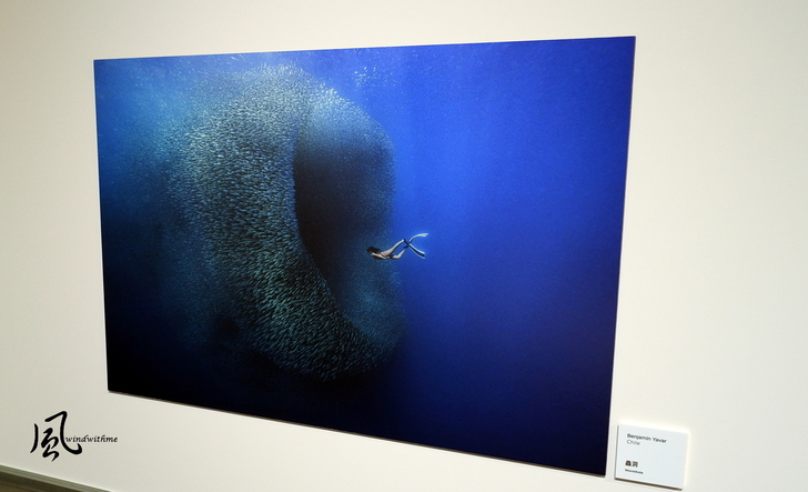 冠軍由智利攝影師的作品《Wormhole(蟲洞)》榮獲,捕捉潛水者穿越如蟲洞排列的魚群時的震撼瞬間。