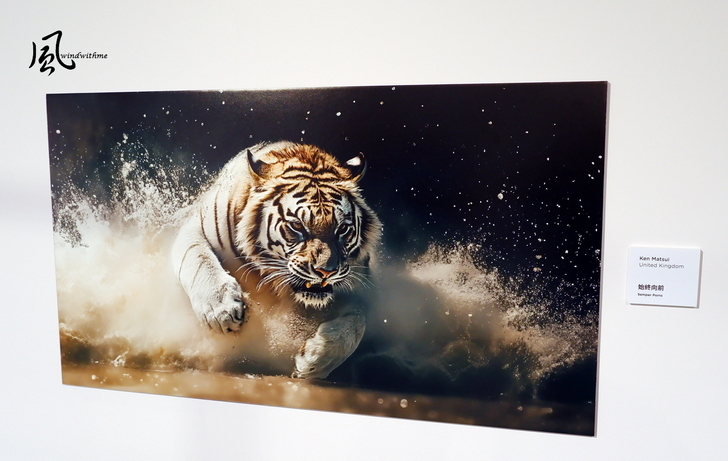 老虎是力量與決心的象徵作為主題,描繪在水中環境中,突顯了水的動態構圖,還強調了無論面臨何種障礙,仍然要勇往直前的概念。