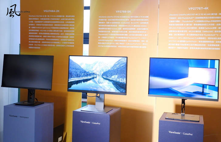 現場同時展示了3款27吋螢幕新品,ColorPro系列4K搭載Thunderbolt 4或5K解析度,並有商用系列內建AI感測技術應用的螢幕。