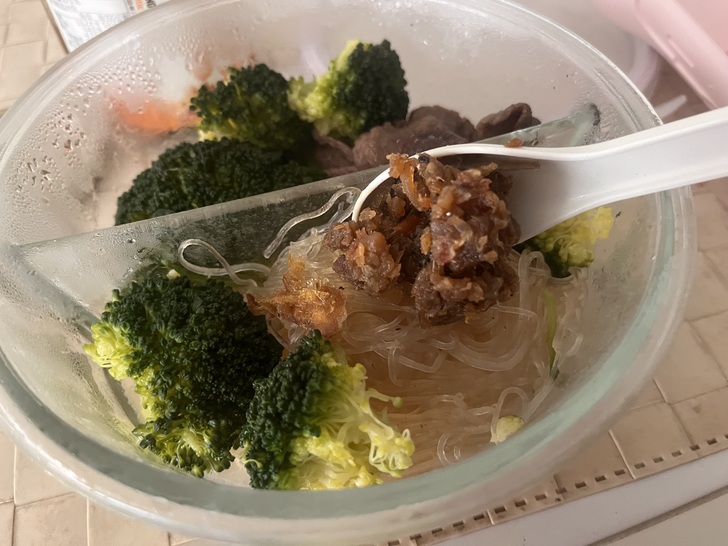 下班都燙個青菜再下一把冬粉加醬油簡單調個味當作晚餐