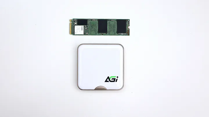 作為對比,上面是 M.2 2280 的 SSD,下面則是 EDM38 本體,可以看到尺寸的確不大。目前市面上這樣小體積的 SSD,且又支援 USB3.2 Gen2 x2 20Gbps 規格,基本上都是使用 SMI SM2320,我們在 COMPUTEX 2023 即看到 SMI 推出這個方案,算是目前常見的單晶片選擇,過去我們也開箱過滿多款產品使用這顆晶片。而儲存方面則是看廠商搭配 TLC 還是 QLC 顆粒。這次我們知道 AGI EDM38 使用的是 TLC 顆粒,因此在長時間寫入上的速度維持以及壽命上會比較放心。不過具體是哪一個顆粒,因為官方並沒有告知,手上這顆也無從拆解,所以尚不清楚。