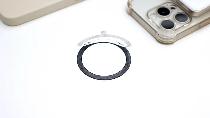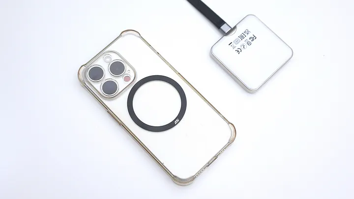 這時 AGI 隨附的磁吸鐵片就可以派上用場,其背面已經預貼好雙面膠,所以只要對準保護殼的位置或是 iPhone 機背上 Apple Logo 的位置黏貼就可以。不過我也試了一下,如果是一般標榜親膚材質的保護殼,表面比較難被這個膠黏住,稍微用力就會脫落,所以我這次主要還是使用最陽春的透明殼。黏貼很穩,要撕起來也不會太困難或留下殘膠。如果你有比較多手機殼或想固定的位置,目前這種貼片,大約在 10 元左右。我會想建議 AGI 如果在自家蝦皮賣的時候,可以單獨賣這個貼片,讓消費者購買時順便加購比較方便。