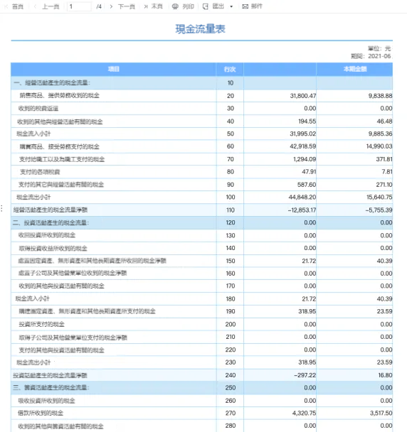 現金流量表記錄企業在一定期間內的現金流入和流出。