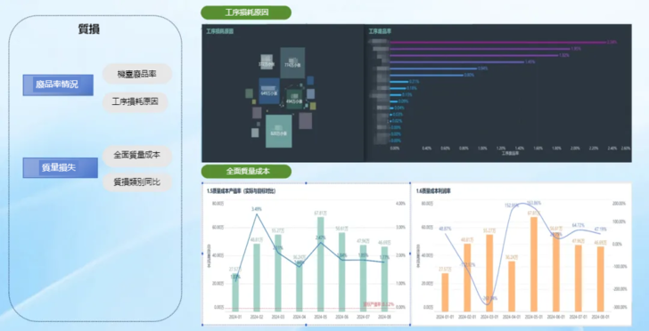 質損管理上,BI實時監控生產過程中的品質資料,及時發現問題並追溯根源,進而最佳化生產工藝和流程;日常營運中,BI監控生產流程、人員配備、物料使用等方面,分析資源使用情況,提供最佳化建議;