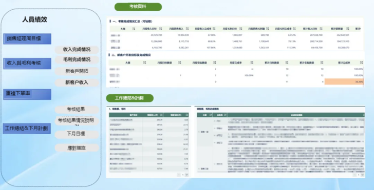 人員績效管理上,BI全面跟蹤銷售人員業績,及時評估銷售策略有效性,自動化計算銷售額、毛利貢獻、客戶維護情況等指標,助力銷售經理客觀公正評估績效,激勵員工;