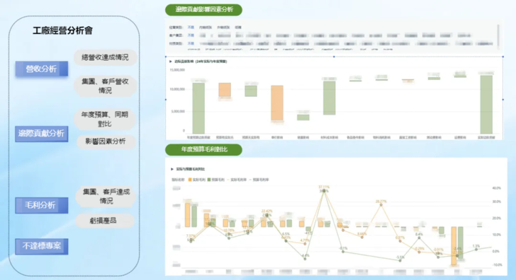 資料視覺化直觀,BI工具支援多種圖形化展示方式,財務分析結果以圖表、儀表盤等形式呈現,便於管理層快速把握事業動態;
