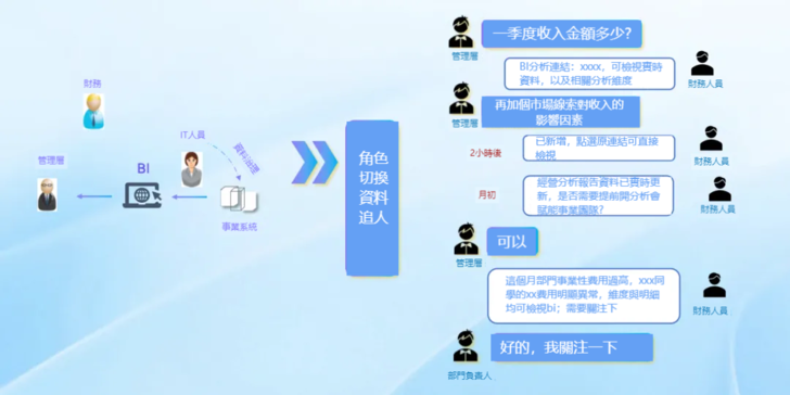 事業部門關注各項事業的盈利情況、成本控制以及部門間的協同效率,希望透過資料分析找出潛在的事業改進點,提升整體盈利能力;