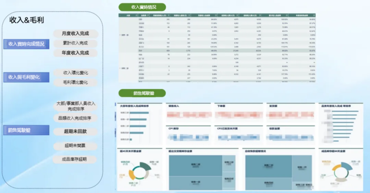 收入&毛利分析中,BI平臺整合銷售資料,實時跟蹤收入和毛利變化,分析不同地區、產品、客戶的銷售資料,明確盈利能力和風險,還能分析產品毛利率趨勢,為調整銷售、定價策略和產品組合提供依據;