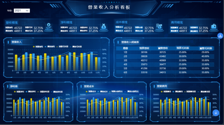 下面數據君來演示幾張看板,帶大家看看科學的預算分析一般要準備哪些內容。這些看板都是用FineReport來搭建的,除了銷售場景下的目標設定環節,FineReport還內建了很多場景和環節的模板資源,操作簡單易上手,有相關需求的可以自己點選連結試一試:https://www.fanruan.com/zh-tw/trial