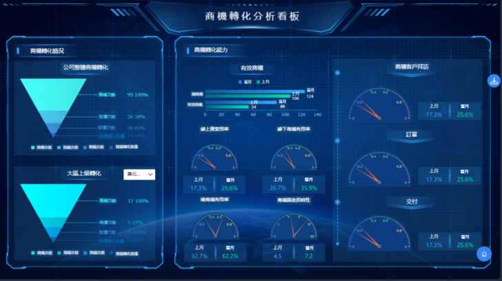 · 商機趨勢:柱狀圖和折線圖展示了不同區域的商機數量和趨勢。這有助於預算分析中識別潛在的市場機會和需求,為銷售和產品開發提供指導。