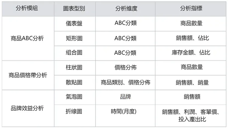 3、品牌效益分析:借助月度變化趨勢追蹤各品牌的銷售額、利潤、客單價和銷售成本率等指標,以評估品牌的表現效果,最終幫助零售企業辨識並優化高效益品牌,提升企業的銷售和盈利能力。