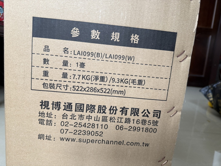 LAI099 ARGB的包裝紙箱,側面印有廠商資訊,不過電話有06和07的,我以為只有北部有維修點?