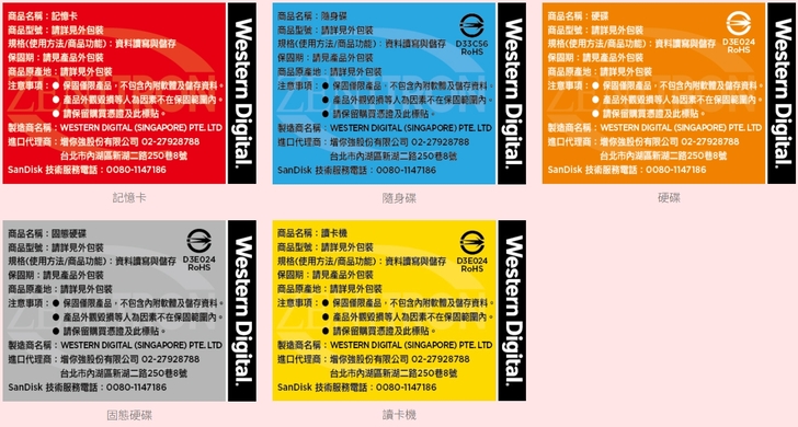 這其實是產品的區別,不管那家代理商的產品,都依原廠顏色規範,紅色為記憶卡產品、藍色為隨身碟、灰色為SSD固態硬碟、黃色為讀卡機產品