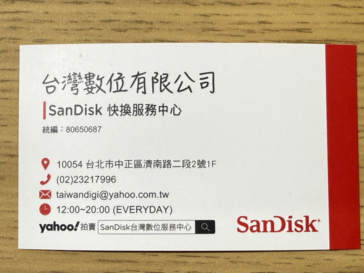 關於台灣數位有限公司(SanDisk快換服務中心)