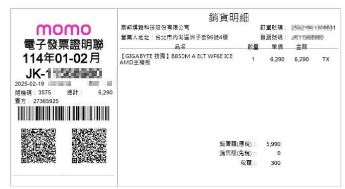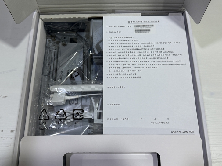 B850M AORUS ELITE WIFI6E ICE 白色包裝