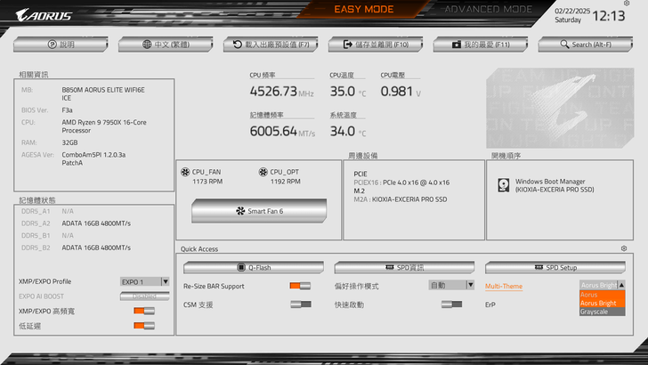 預設BIOS畫面主題白色,右下可以改成黑色的或者灰黑底