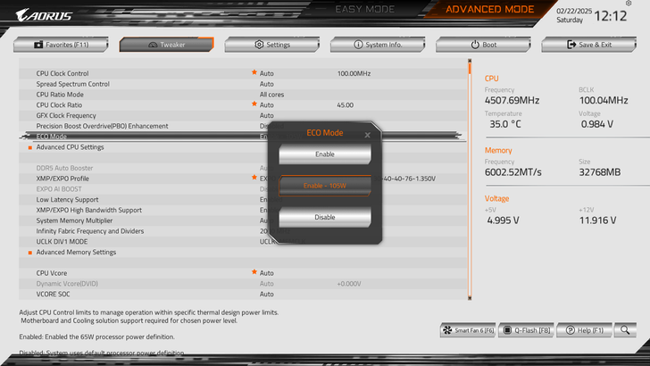 BIOS 畫面有一個ECO 105W選項