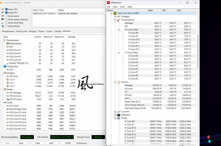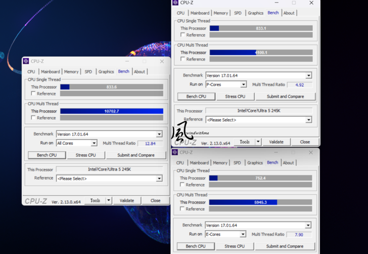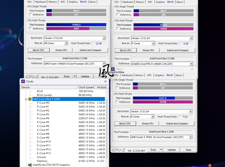 245K規格為6P-cores + 8E-cores所組成共14核14執行緒,Max Turbo最高分別達5.2G與4.6G。
