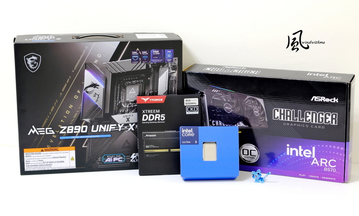 本篇主角為Intel Core Ultra 5 245K,並搭配MSI MEG Z890 UNIFY-X高階主機板、T-FORCE XTREEM DDR5 8200 48GB與ASRock B570 Challenger,以新平台來實測效能表現。