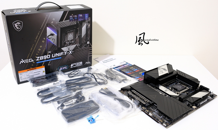 MSI此次同步推出數款專為Core Ultra 200S設計的Z890新主機板,本篇使用MEG Z890 UNIFY-X,定位為高階Z890市場,標榜強大供電設計、採用AI伺服器等級TLVR電感、EZ DIY與PCIe拓源架構設計,照片中為開箱後主機板、外盒、配件全貌。