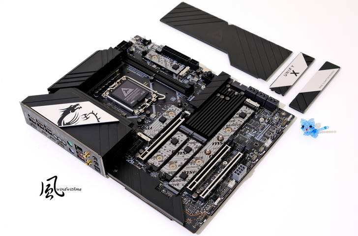 雙面M.2散熱鎧甲下方提供1 x M.2 PCIe 5.0 x4與4 x M.2 PCIe 4.0 x4插槽。