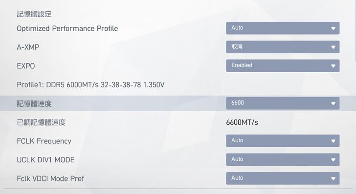 ▼ 在BIOS中把 KLEVV 科賦 FIT V DDR5 超頻至 6600MT/s