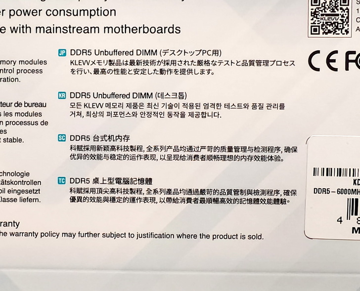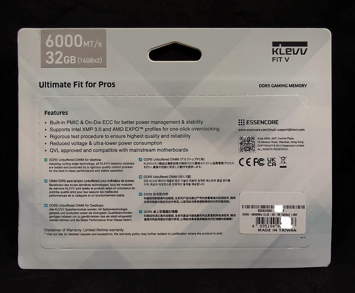 ▼ KLEVV FIT V DDR5 記憶體 採用一次性的包裝
