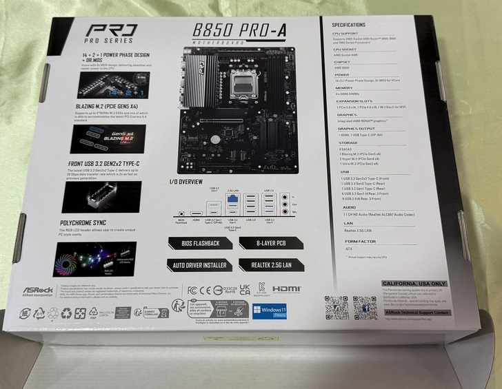 B850 Pro-A 算是CP等級的 ATX AM5 主機板之選