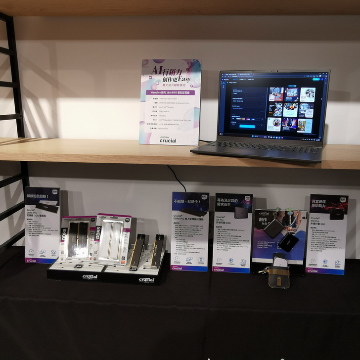 ▼ 當天也有展示出 捷元宙斯機桌上型電腦跟筆記型電腦,內部可都是用 美光 Crucial 記憶體跟SSD。
