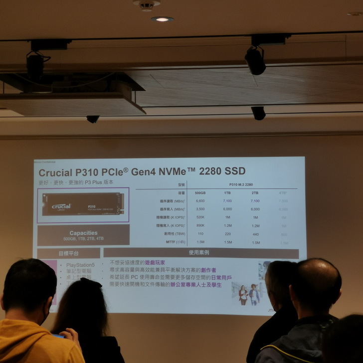 ▼ 美光 列出 Crucial NVMe SSD目前主力產品,有最新的 Crucial P310,還有最高階的 Crucial T705 PCle Gen5 NVMe M.2 SSD。