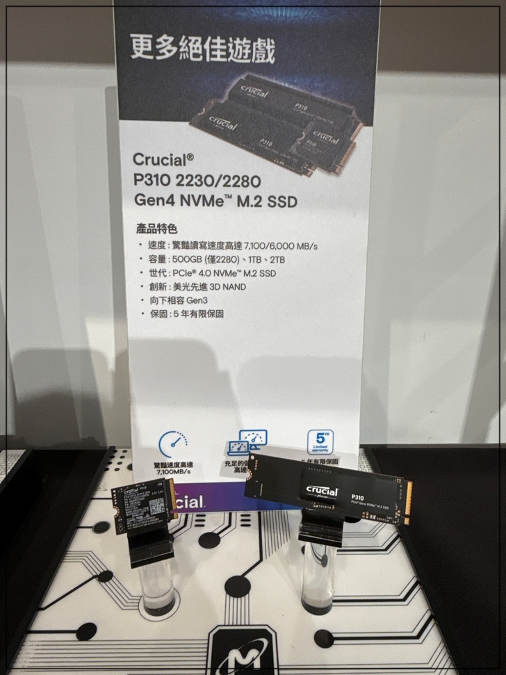 Crucial P310 Gen4 SSD是Crucial目前出貨量最多的SSD,在效能與價格之間有著最高的CP值,大量應用於PC、筆電、PS5、工作站等設備。