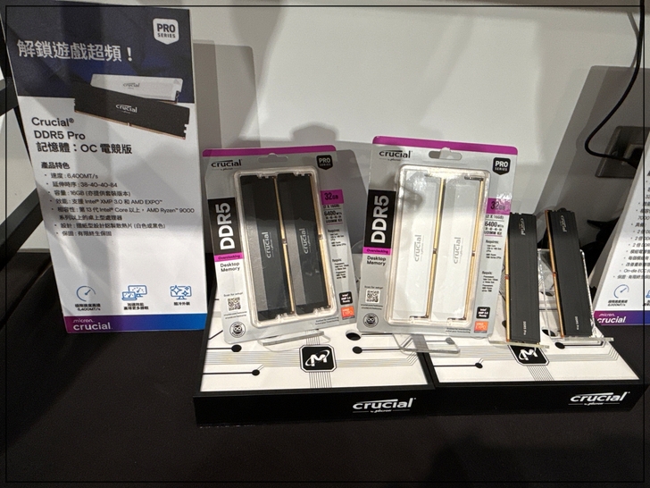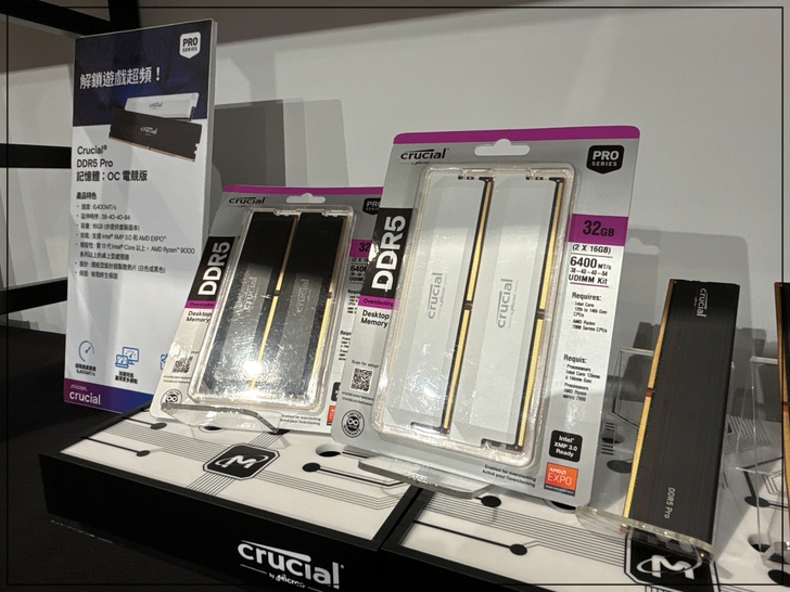 Crucial DDR5 Pro記憶體(OC電競版),速度6400MT/s,時序38-40-40-84,目前是做16GB*2雙通道版本。有黑色跟白色可以選擇,自行依照電腦搭配同色系或是跳色皆可。