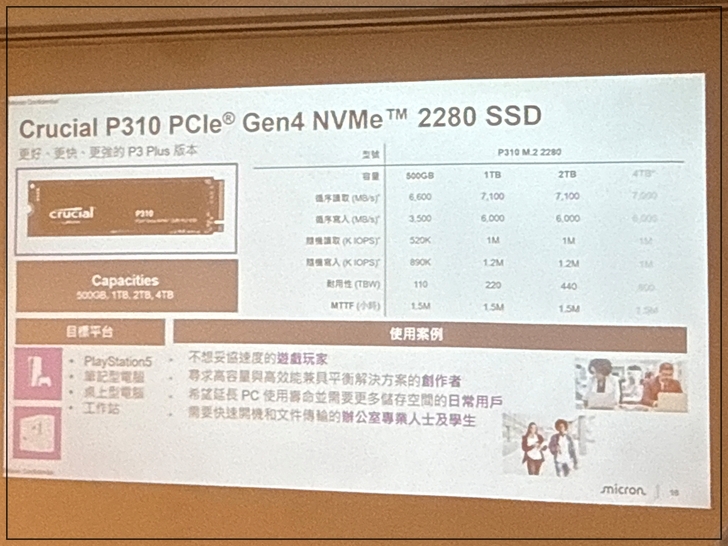 其實美光已經在研發下一代Gen6的產品,不過目前PC還跟不上,因此不會這麼快發表,但是當整體系統提升的時候,美光表示其實他們都已經準備好了。