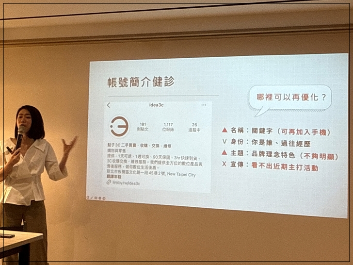 老師也隨便舉一個商家的例子來作帳號簡介健診,讓大家可以更清楚知道如何為帳號優化。