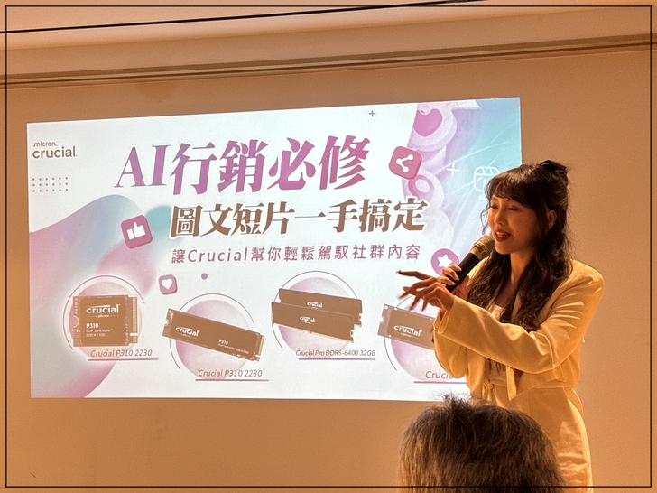 T客邦這次與美光科技一起辦理「行銷人才的 AI 必修課,Crucial 讓你從 IG、FB 社群圖文到短影音剪輯暢行無阻」,當然主要目的是要推廣美光爸爸的SSD、記憶體等硬體,但不可諱言,高效能的SSD跟記憶體也是AI運算不可或缺的強力後盾,當AI的資料庫越來越龐大,就會需要更多的算力來支持AI的運作,而更多的算力當然就要靠硬體的支援(不然NVIDIA是如何走到顛峰的?),因此這些都是息息相關的。